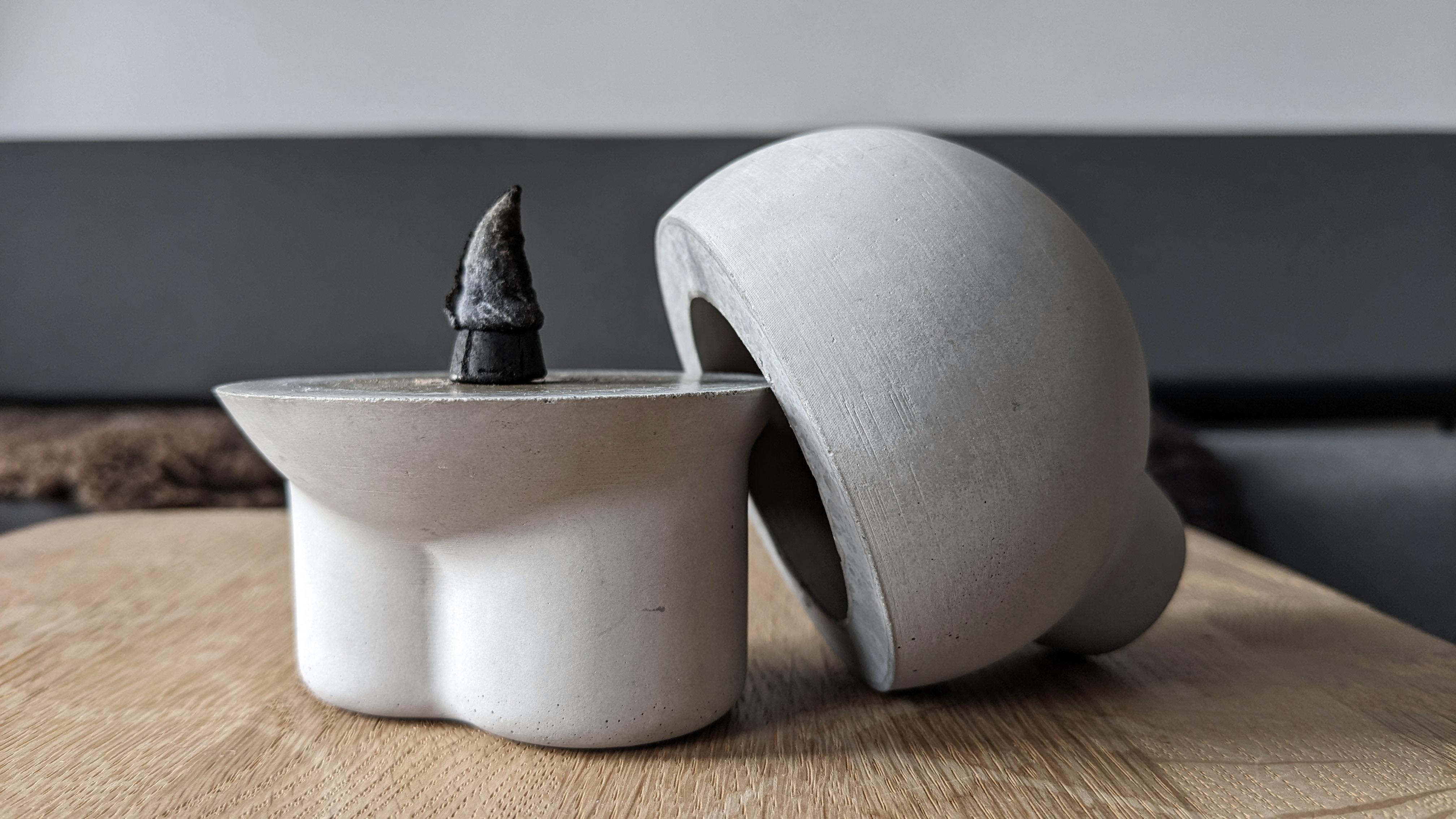 Smokey ist eine Neuinterpretation des klassischen Räuchermännchens aus dem Erzgebirge. Reduziert in der Form und gegossen aus Beton erfüllt er seine Mission: Gemütlichkeit verbreiten.